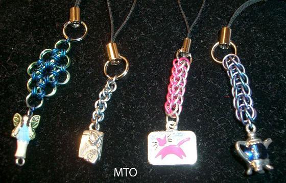 Tea Lover’s cell phone charm. This charm is for all tea drinkers, it has a titanium chain and has a teabag at the end for in case you ever forget your own. Pet Lover’s cell phone charm. Show your love for your cat or dog with this cell phone charm in a Full Persian weave in a color combination of your choice. Please specify your color preference when ordering and choice of dog or cat charm. Tea Drinker’s cell phone charm. This charm is made with anodized titanium rings in the Full Persian weave that just happen to perfectly this little glass teapot.