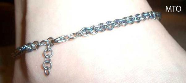 ![]() I wanted to craft an anklet that could be worn constantly without worries of it being damaged and this was my result. The Jens Pind weave (one of my favorites) alternates stainless steel and anodized titanium rings and then is closed with stainless clasp. You can even wear it swimming without fear of hurting it. Please specify length and color preference when ordering