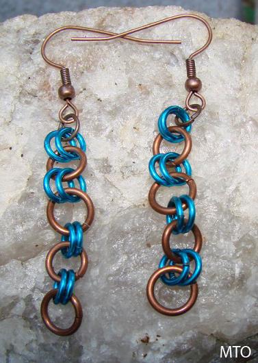These simple yet versatile earrings alternate enameled copper rings with bright copper rings and hang from copper ear hooks. Please specify if you would prefer a different color of enameled copper. If you like these earrings, may I recommend this bracelet to compliment it. Price: $10